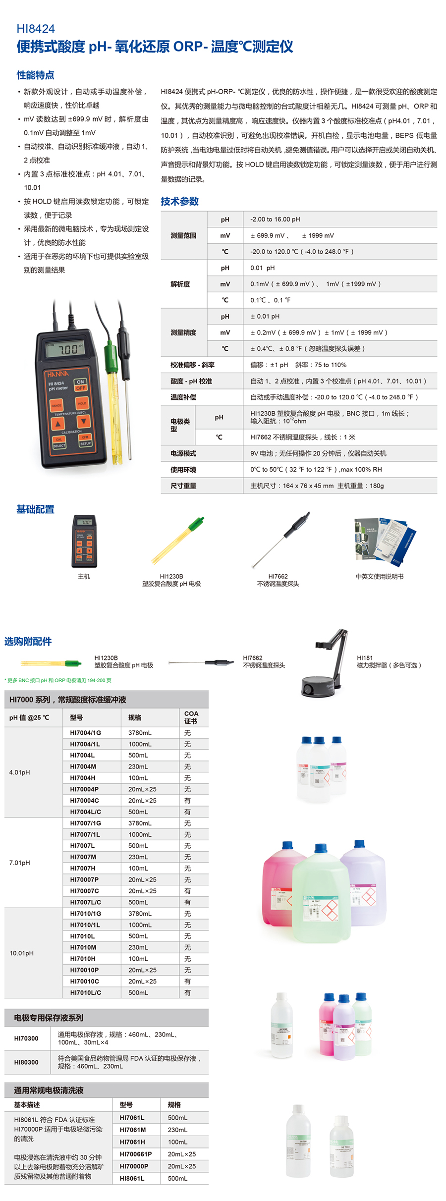 產(chǎn)品名稱:哈納 HI8424 pH-mV-℃測定儀