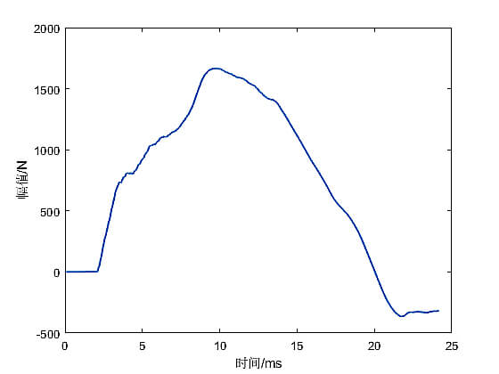 在重質(zhì)混凝土樓板上測(cè)量的橡膠球的撞擊力波形 |