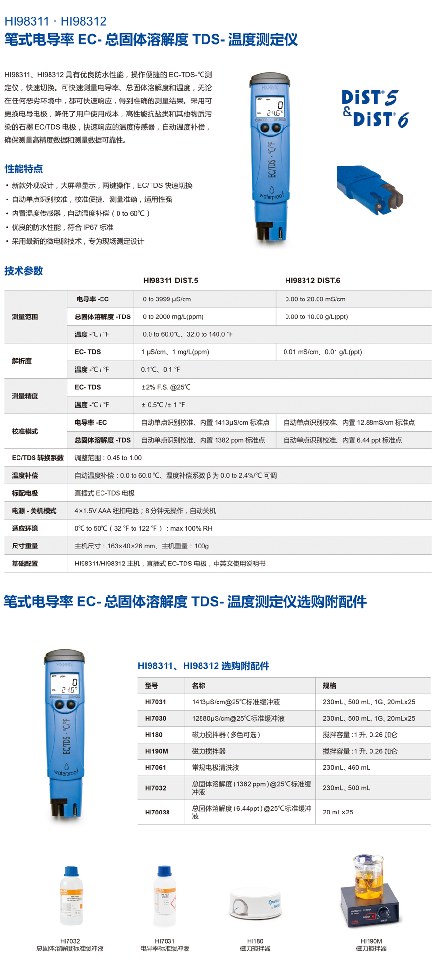 產(chǎn)品名稱:哈納 HI98312 高量程EC-TDS-℃測定儀