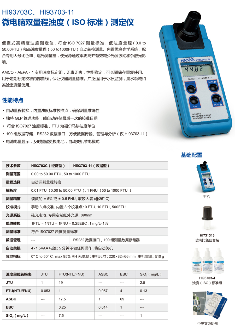 產(chǎn)品名稱:哈納 HI93703-11 微電腦濁度測定儀