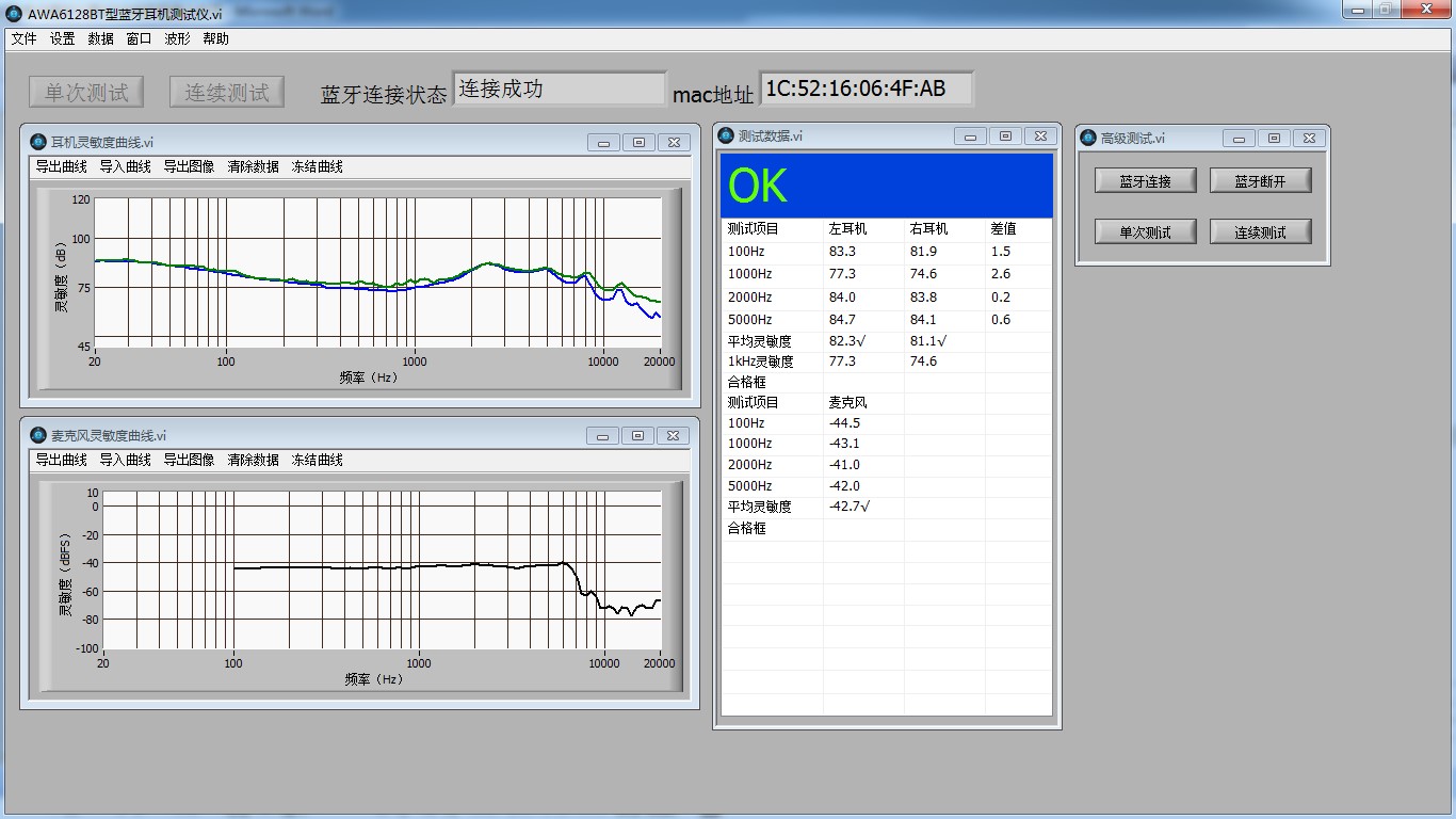 2、藍牙麥克風測試:頻率范圍:20 Hz~20k Hz