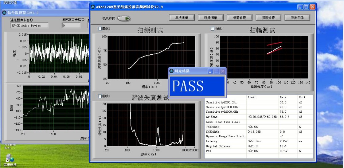 根據(jù)設(shè)定的門限自動(dòng)判斷合格品或不合格品。不合格項(xiàng)目自動(dòng)顯示X 字符,方便用戶找出不合格項(xiàng)目。測(cè)試結(jié)束后,簡(jiǎn)潔直觀的顯示出PASS/FAIL,極大的提高了測(cè)試效率。軟件能導(dǎo)出測(cè)試報(bào)表和圖像。儀器由電聲測(cè)試儀主機(jī)、消聲箱和專用的分析軟件組成。
