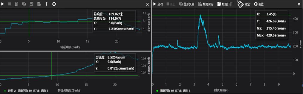 響度測量參照標準ISO 532-1(靜態(tài)響度、時變響度)、尖銳度、波動度和粗糙度測量 |