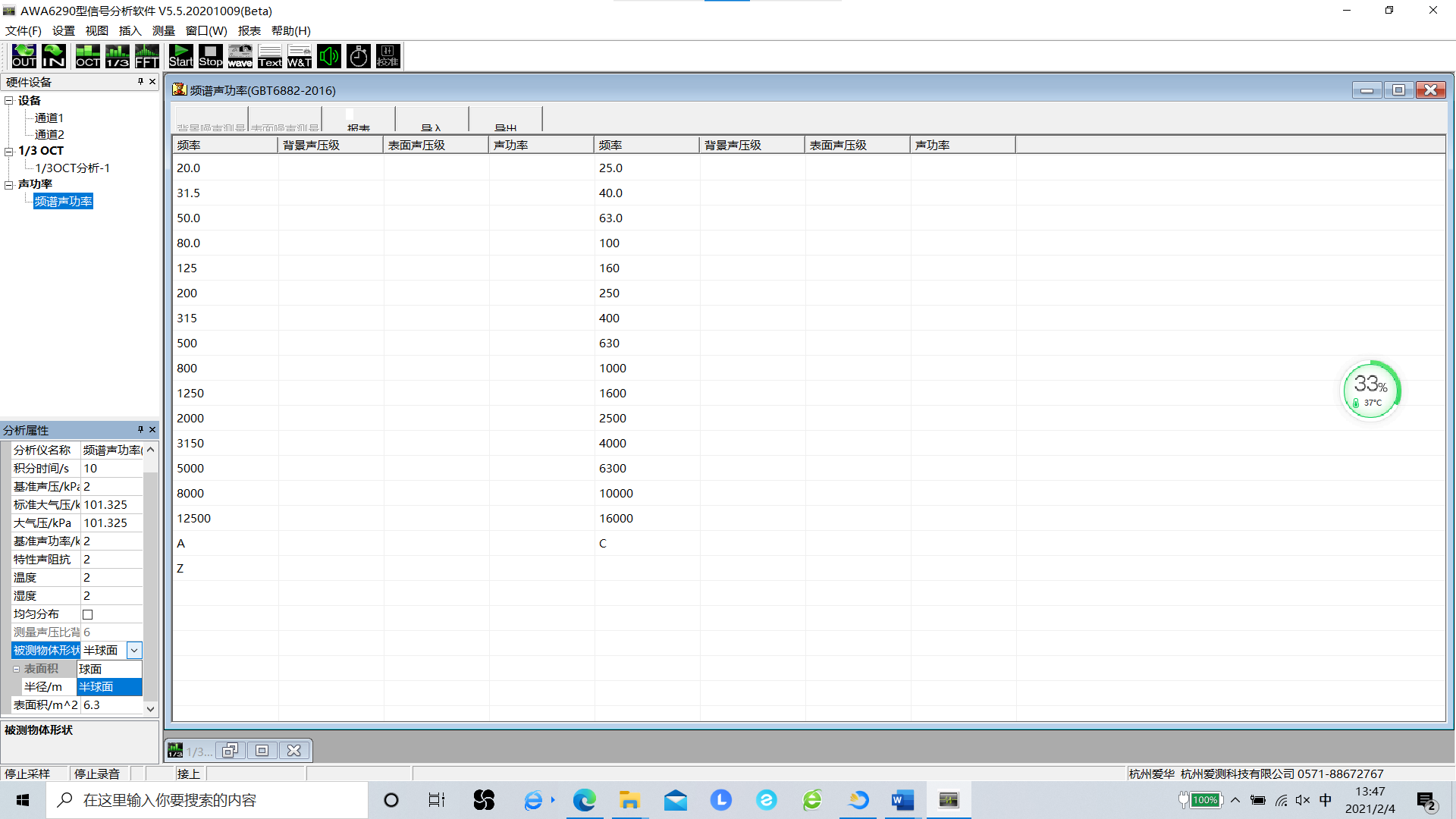 1/3 OCT頻帶聲功率級及A,C,Z計(jì)權(quán)聲功率級同時(shí)測量 |