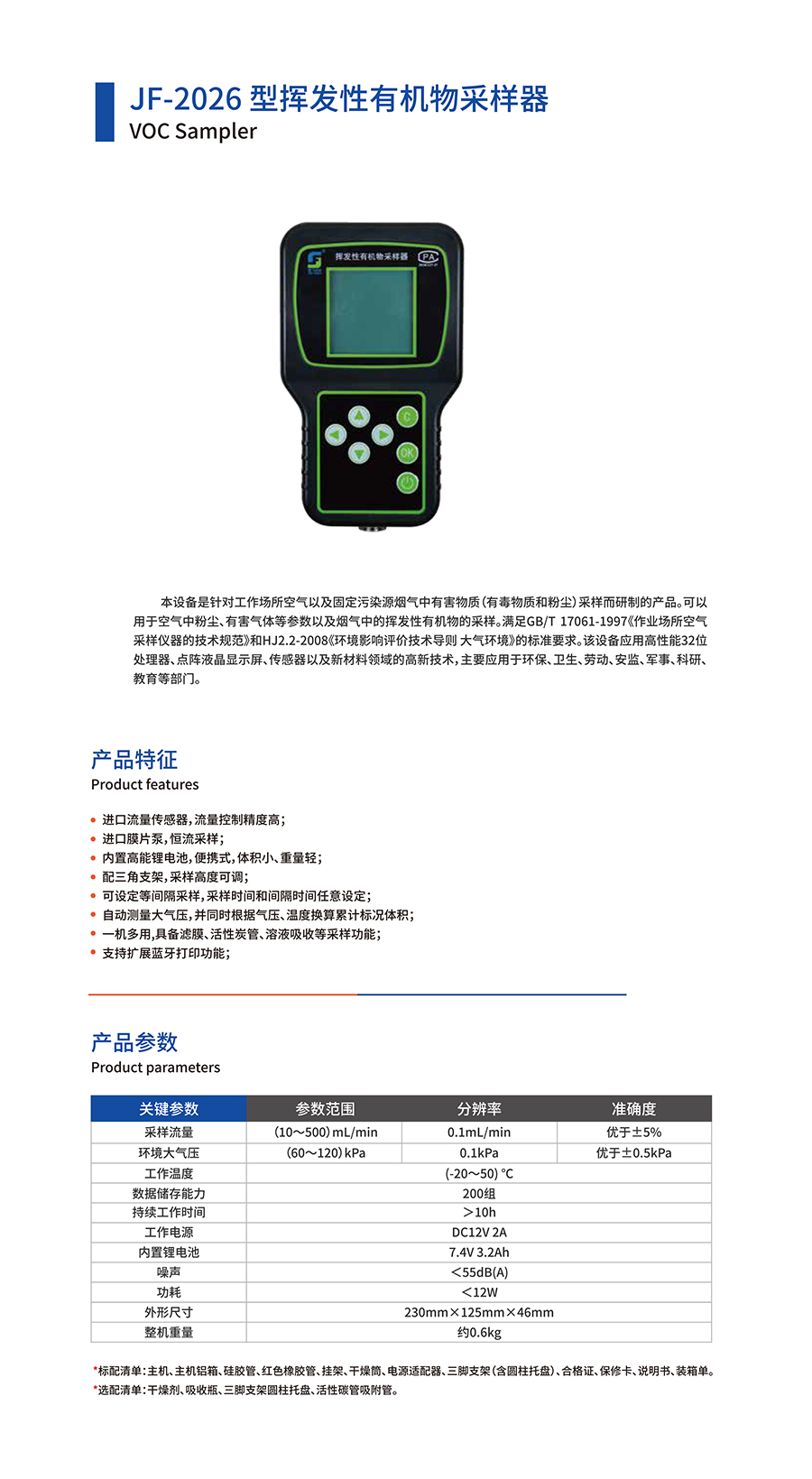 產(chǎn)品名稱:JF-2026型揮發(fā)性有機物采樣器