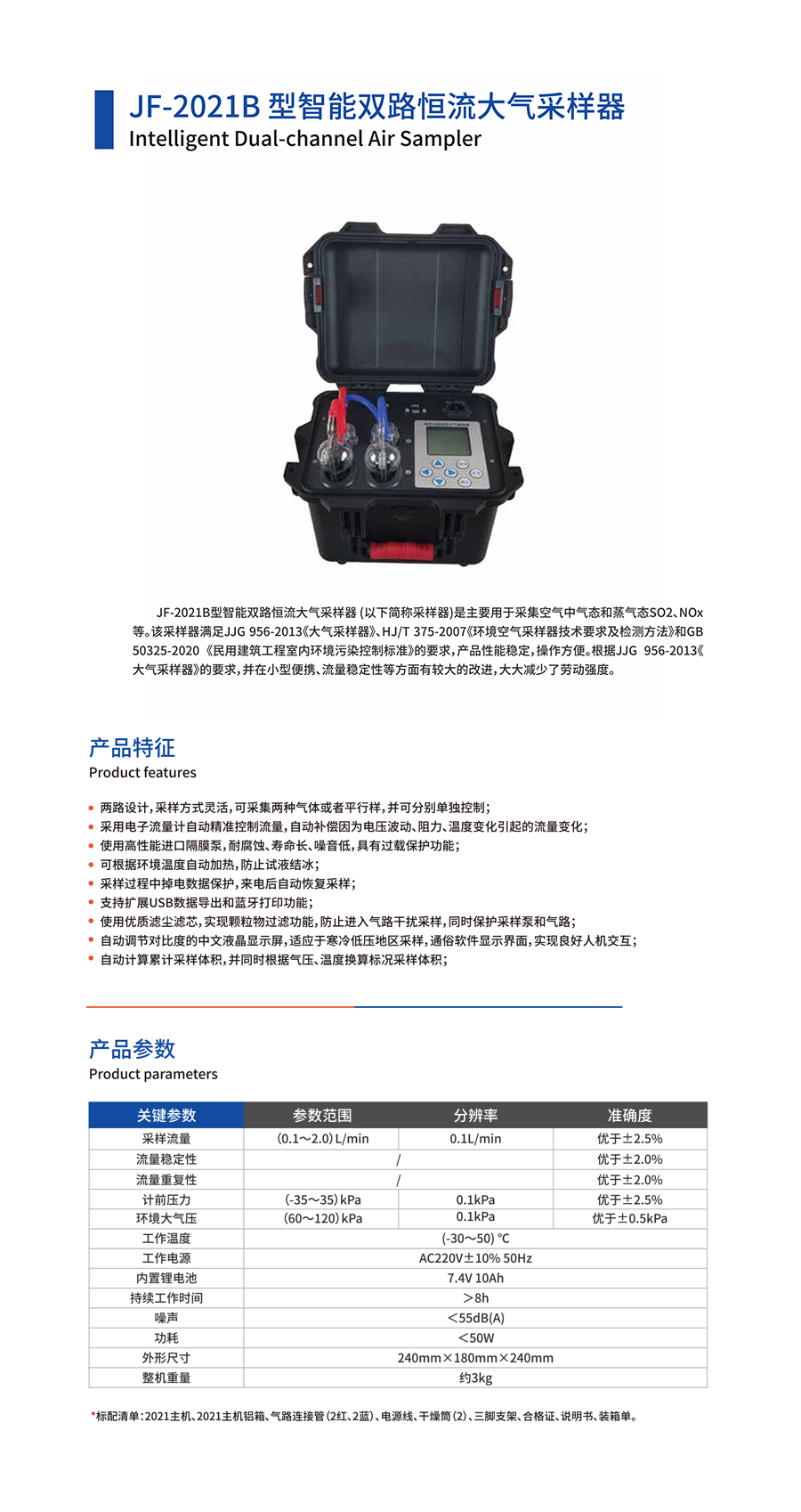 產(chǎn)品名稱:JF-2021B型智能雙路恒流大氣采樣器