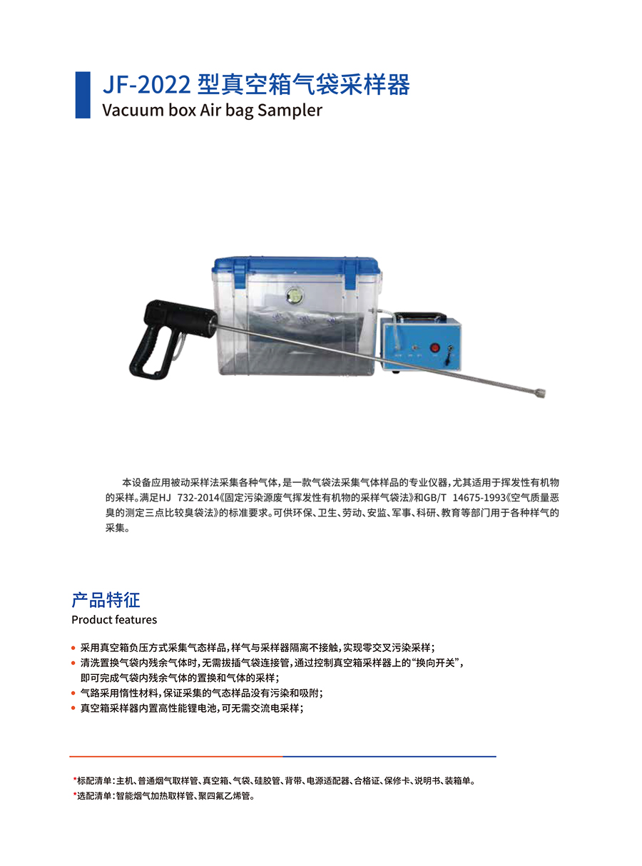 產(chǎn)品名稱:JF-2022型真空箱氣袋采樣器