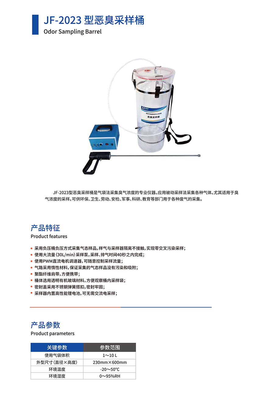 產(chǎn)品名稱:JF-2023型惡臭采樣桶