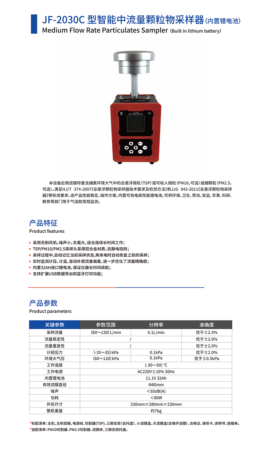 產(chǎn)品名稱(chēng):JF-2030C型智能中流量顆粒物采樣器(內(nèi)置鋰電池)