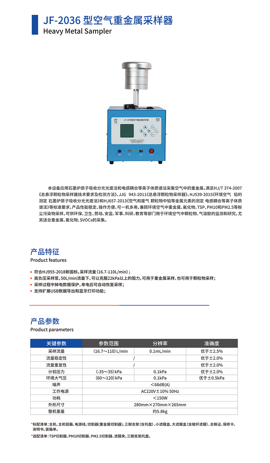 產品描述:本設備應用石墨爐原子吸收分光光度法和電感耦合等離子體質譜法采集空氣中的重金屬。滿足HJ/T 374-2007《總懸浮顆粒物采樣器技術要求及檢測方法》、JJG 943-011《總懸浮 顆粒物采樣器》、HJ539-2015《環(huán)境空氣鉛的測定石墨爐原子吸收分光光度法》和......