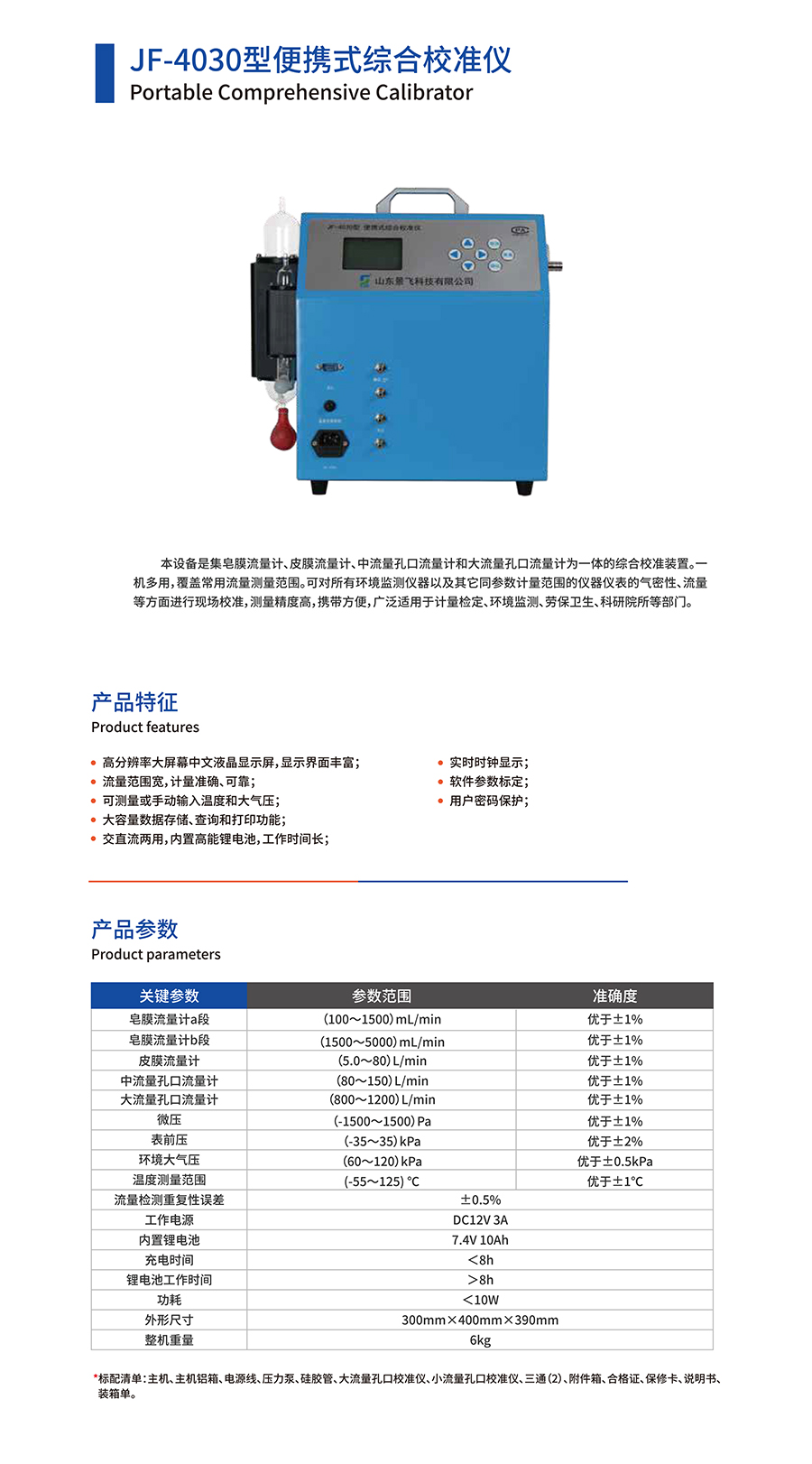 產(chǎn)品名稱:JF-4030型便攜式綜合校準儀